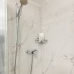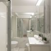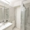 The bathroom, finished with quality materials, features a spacious shower, bidet, and toilet, ensuring all necessary comforts. Every detail has been curated to offer a functional and pleasant environment.