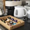 The kitchen has a Nespresso Pop coffee machine (the best type), a kettle, a toaster and complete crockery for two people.